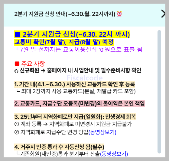 교통카드 이용 내역 보유: 환급 대상이 되기 위해선 수도권 통합요금제가 적용되는 버스 또는 지하철 이용 내역이 반드시 있어야 하며, 해당 내역은 교통카드로 결제된 경우에만 인정됩니다. 현금, 정기권, 무임카드는 지원 대상에서 제외됩니다.