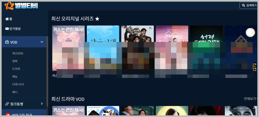 드라마와 최신 콘텐츠를 시청을 원하시는 분들이라면 카테고리에 최신 VOD 섹션이 있단기 때문에 최근에 방송된 콘텐츠를 쉽게 찾을 수 있습니다.