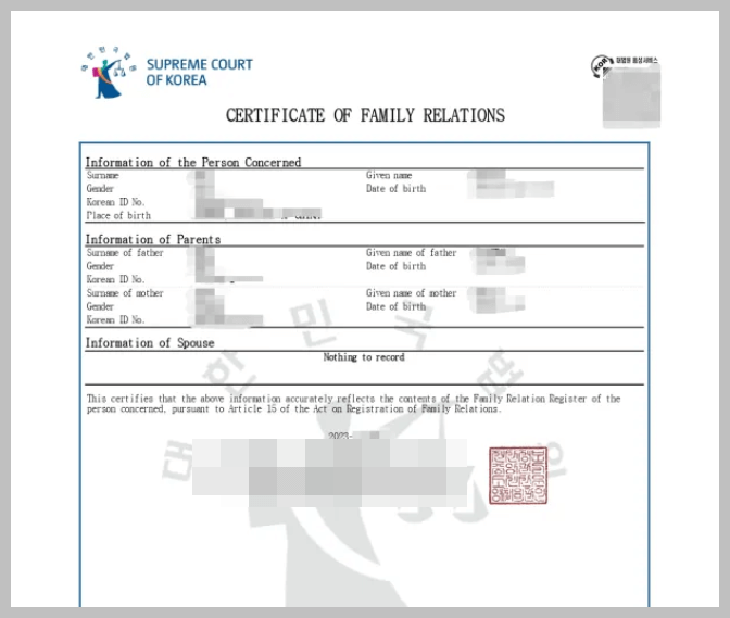 가족관계증명서의 경우 대한민국 법원의 가족관계등록부에 기초하여 발급되는 문서로, 부모-자녀 관계, 배우자 관계 등을 증명할 때 필수적으로 요구가 되는데요.